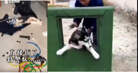 最近,云南某特警隊(duì)和消防隊(duì)的小哥哥想挑戰(zhàn)不可能。于是收養(yǎng)了兩只二哈,一只叫不拆一只叫八萬,都是有正式編制的警犬。