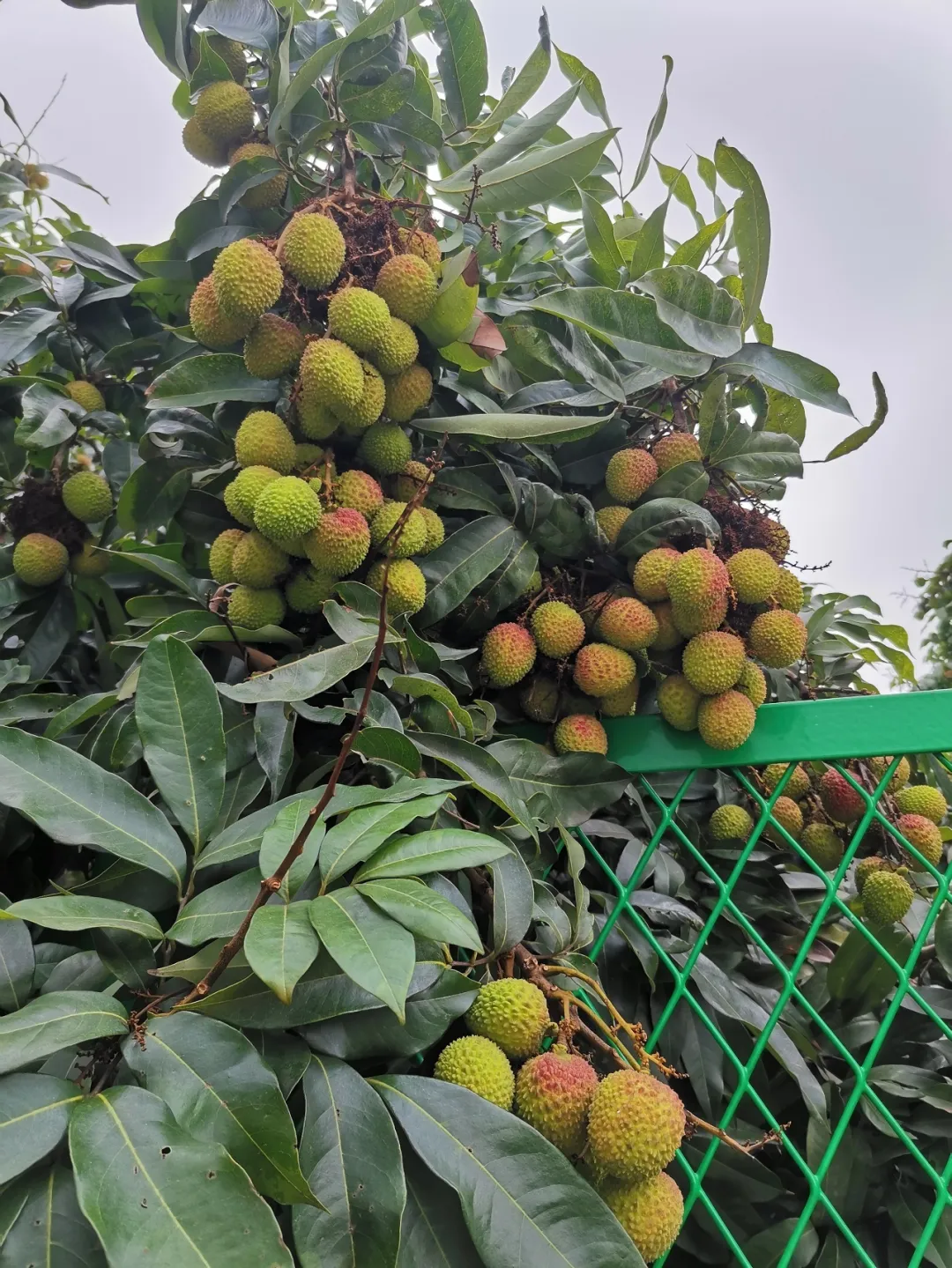在西麗果場(chǎng)第二分場(chǎng),記者看到,一串串個(gè)頭飽滿的妃子笑壓彎了樹枝,青中泛紅,甚是誘人。隨意采摘一顆,果肉細(xì)嫩,甘甜多汁。“妃子笑三分之一泛紅,是最新鮮美味的時(shí)候。”邱金淡說,今年南山荔枝妃子笑收成屬于中等偏上年份,整個(gè)西麗果場(chǎng)場(chǎng)部的產(chǎn)量估計(jì)有5萬公斤,本月底正式上市。
