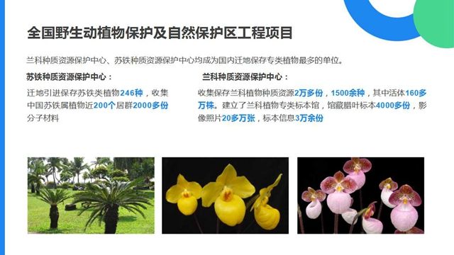 野生動植物在保存著豐富的遺傳基因多樣性,在拓展人類未來生存空間等方面具有難以估量的價值。為此,2001年12月21日,全國野生動植物保護及自然保護區(qū)建設(shè)工程在京啟動,并重點實施大熊貓、朱鹮、虎、金絲猴、藏羚羊、揚子鱷、亞洲象、蘭科植物、蘇鐵植物等15大極度瀕危的珍稀物種的拯救和繁育,其中全國僅有兩個植物類物種資源保護中心蘭科、蘇鐵種質(zhì)資源保護中心落戶羅湖。蘇鐵種質(zhì)資源保護中心遷地引進保存蘇鐵類植物246種,收集中國蘇鐵屬植物近200個居群2000多份分子材料。蘭科種質(zhì)資源保護中心收集保存蘭科植物種質(zhì)資源2萬多份,1500余種,其中活體160多萬株。建立了蘭科植物專類標本館,館藏臘葉標本4000多份,影像照片20多萬張,標本信息3萬余份。