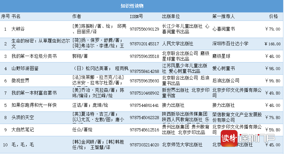 見圳客戶端·深圳新聞網(wǎng)2020年6月1日訊(記者 馬璇 通訊員 周知)第七屆“我最喜愛的童書”閱讀推廣活動(dòng)自4月23日啟幕以來,全國34家單位強(qiáng)強(qiáng)聯(lián)手,共同打造國內(nèi)具公信力、影響力的少兒閱讀推廣活動(dòng)。經(jīng)過專家學(xué)者推選、網(wǎng)絡(luò)投票等環(huán)節(jié),30強(qiáng)圖書于6月1日火熱出爐。