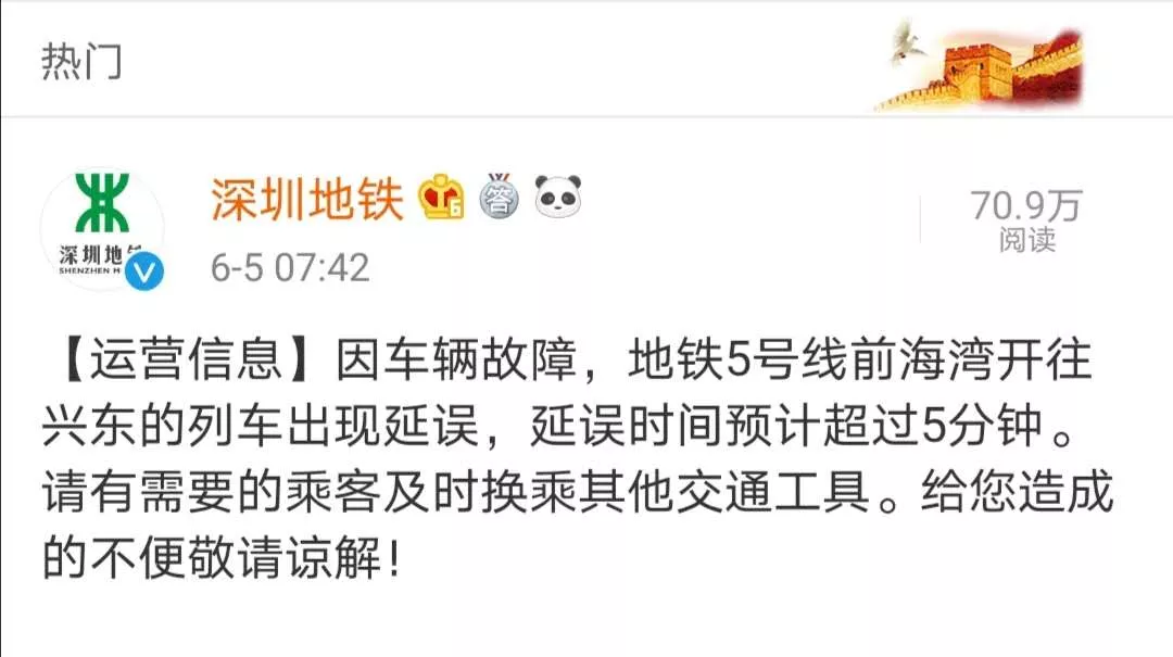 深圳地鐵5號線今早突發(fā)故障!目前已 ...
