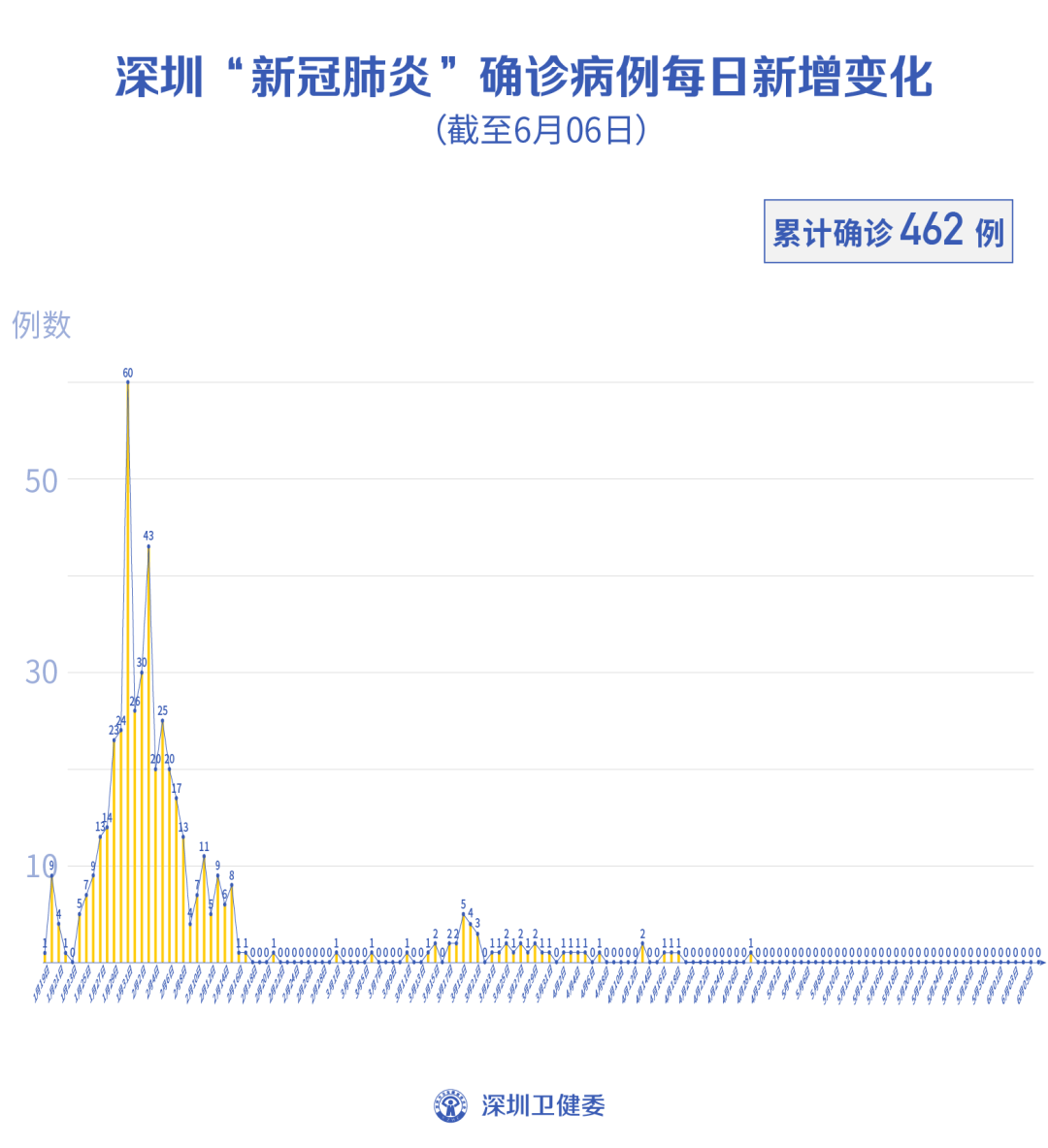 截至6月6日24時,深圳累計報告新冠肺炎病例462例。
