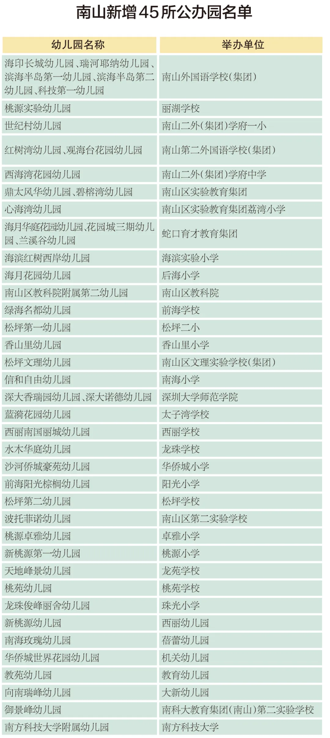 其中2所為原有公益民辦園轉(zhuǎn)型,分別是蛇口育才教育集團(tuán)陽(yáng)光幼兒園和南山區(qū)科技第一幼兒園。