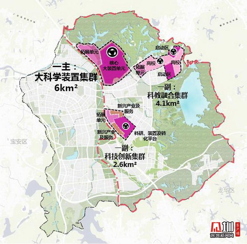 2019年8月18日,國(guó)家發(fā)布了《中共中央國(guó)務(wù)院關(guān)于支持深圳建設(shè)中國(guó)特色社會(huì)主義先行示范區(qū)的意見》,提出以深圳為主陣地建設(shè)綜合性國(guó)家科學(xué)中心。市規(guī)劃和自然資源局地區(qū)規(guī)劃處副處長(zhǎng)葉陽(yáng)介紹,光明科學(xué)城北起深莞邊界,東部和南部以光明區(qū)轄區(qū)為界,西部以龍大高速和東長(zhǎng)路為界,規(guī)劃總面積99平方公里,將構(gòu)建“一主兩副”的科學(xué)裝置集聚區(qū)空間布局。