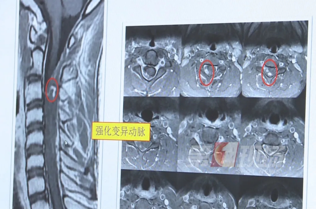 隨后,小威在朋友的幫助下來到寶安人民醫(yī)院(集團)第二醫(yī)院,做了脊髓磁共振檢查,結(jié)果比大家想象的嚴重許多,小威的頸椎血管爆了……