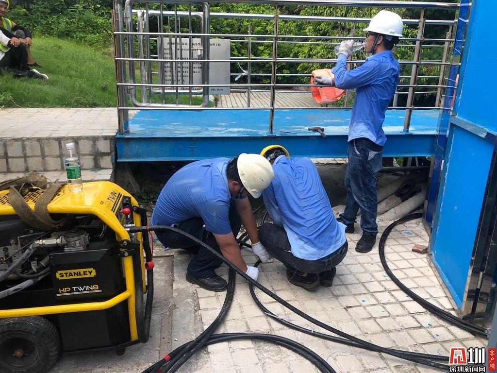 正午烈日下深圳水務(wù)集團工作人員正在進行作業(yè)。
