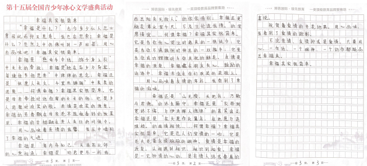 見(jiàn)圳客戶端 ·深圳新聞網(wǎng)2020年7月2日訊 (記者 曹園芳)它是文學(xué)愛(ài)好者的天堂,是以文學(xué)大師冰心名字命名的文學(xué)盛宴,是歷時(shí)15年的全國(guó)精品賽事,它就是“第十五屆全國(guó)青少年冰心文學(xué)盛典”。日前,習(xí)作、讀書(shū)筆記、散文、詩(shī)歌、小說(shuō)、童話、故事、微電影劇本、手抄報(bào)、書(shū)法、繪畫(huà)等作品正如火如荼地征集中。