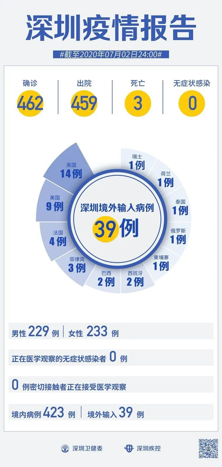 截至7月2日24時(shí),深圳累計(jì)報(bào)告新冠肺炎病例462例。