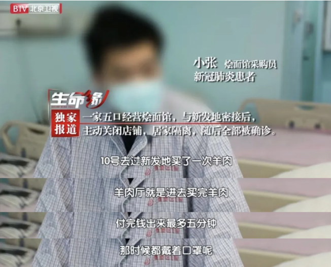 這感染的五口人里,父親是廚師,母親幫廚,大兒子二女兒在前廳幫忙,小兒子則作為采購(gòu)員每周定期去新發(fā)地市場(chǎng)買羊肉。