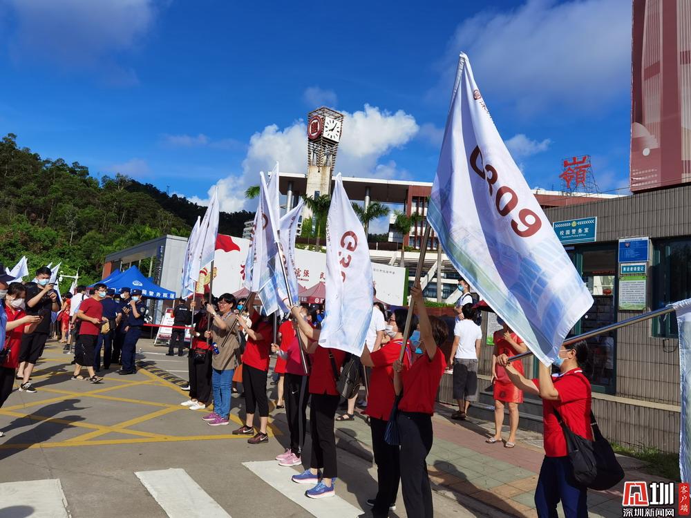 【深圳中學(xué)】身穿紅色旗袍的家長們預(yù)祝考生們旗開得勝。