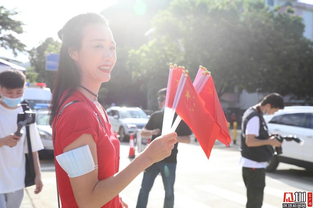 一名家長自費(fèi)購買100個小國旗發(fā)放給考生,為他們加油助威。