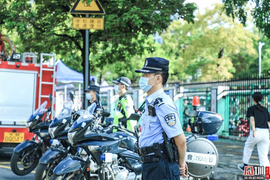深圳警察考點(diǎn)外守護(hù)考生安全。