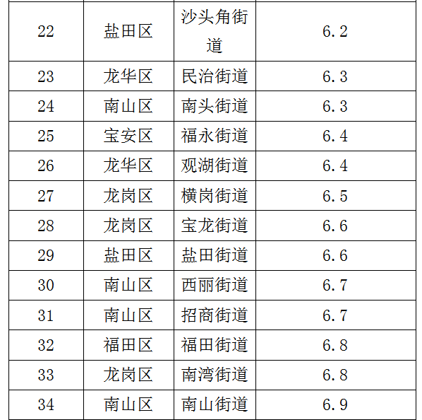 今年6月,全市74個街道PM2.5濃度在5.0-10.2微克/立方米之間,均值為7.0微克/立方米。排名前十的是:福保、福海、海山、西鄉(xiāng)、南園、清水河、粵海、石巖、石井和蓮花等街道,排名倒數(shù)前十的是:觀瀾、坪地、龍?zhí)铩⒋罄?、馬田、公明、龍崗、龍華、沙井和鳳凰等街道。