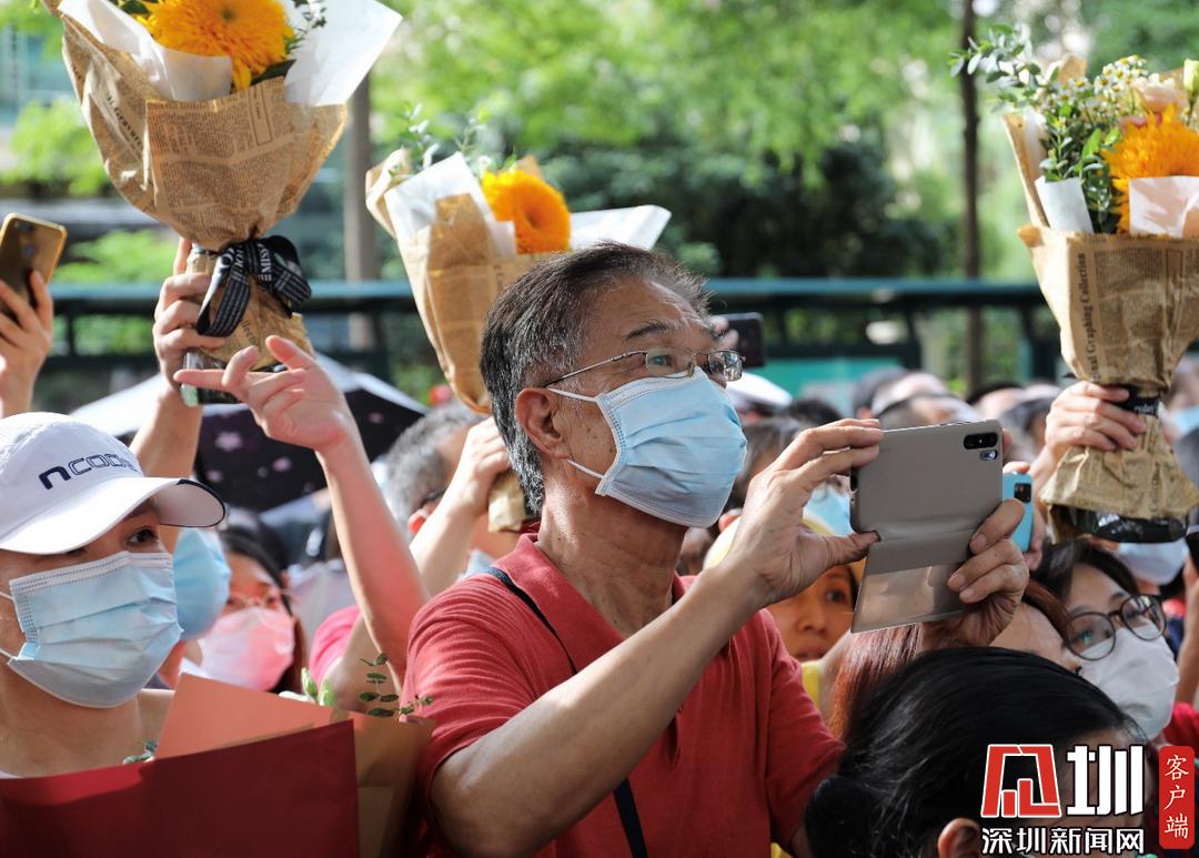 深圳高級(jí)中學(xué)考點(diǎn)外家長(zhǎng)耐心守候,等待記錄特別時(shí)刻。