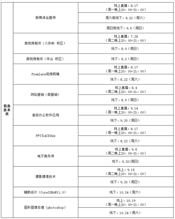 據(jù)悉,智能制造類、信息技術(shù)類課程7月9日開始報名,企業(yè)管理類、社會服務(wù)類、創(chuàng)業(yè)項目類7月10日開始報名,報名時間截止到7月底。