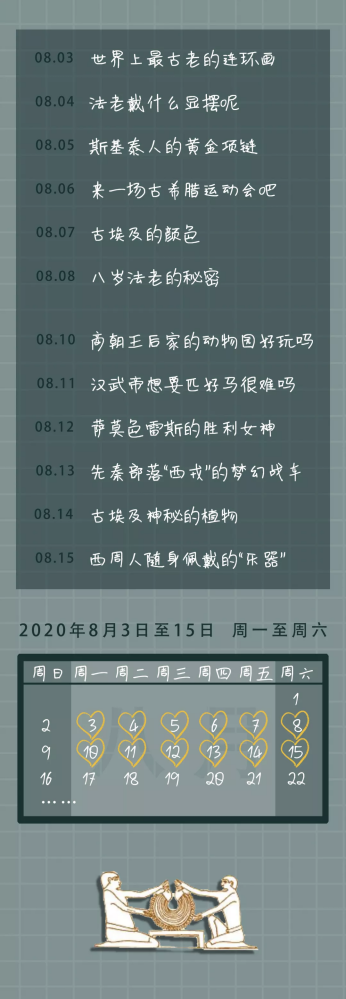 小小博物家,這個(gè)夏天我們從古埃及到古中國(guó),為漢武帝尋馬,拜訪八歲的埃及法老,追尋最古老的連環(huán)畫(huà)……與傳統(tǒng)課堂不同,小小博物家十二講,營(yíng)造充滿互動(dòng)性的“沉浸式”課堂。