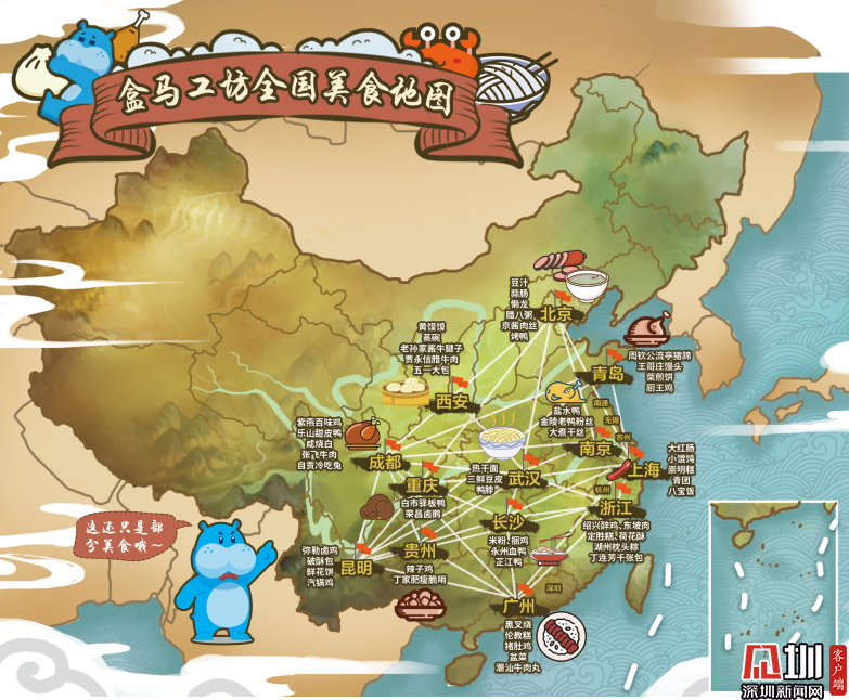 目前,盒馬工坊已覆蓋全國23個(gè)城市,不僅在每個(gè)城市做到因地制宜、本地本味,還把很多地方美食帶到了各地,形成了一張流動(dòng)的全國美食版圖。