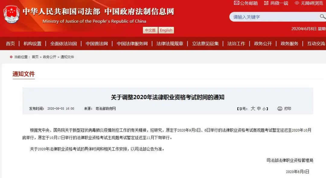 2020年法律職業(yè)資格考試客觀題考試延至10月底