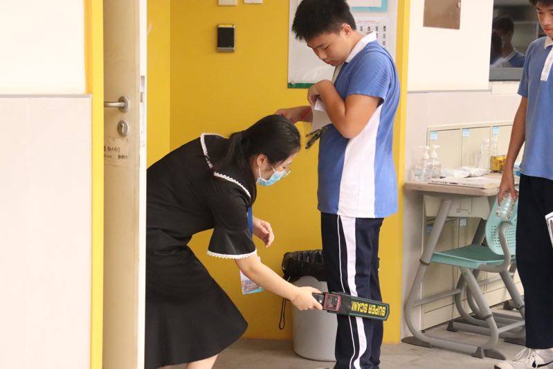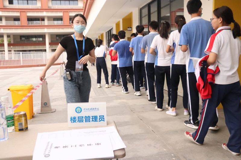 坪山同心外國語學(xué)校的考生進(jìn)入教室。(記者焦子宇耿超逸)