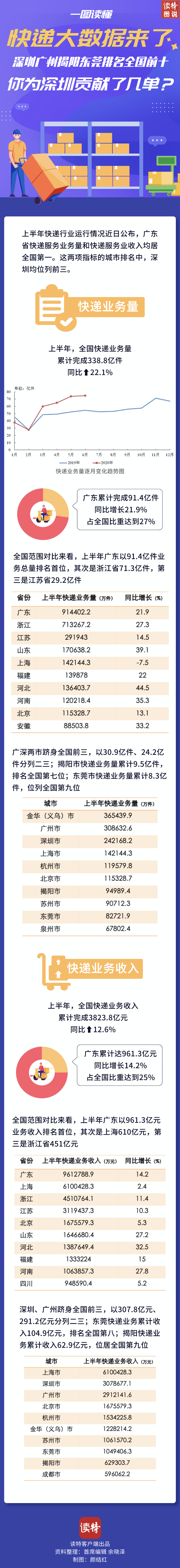 一圖讀懂|快遞大數(shù)據(jù)來了 深圳廣州揭陽東莞排名全國前十 你為深圳貢獻(xiàn)了幾單?