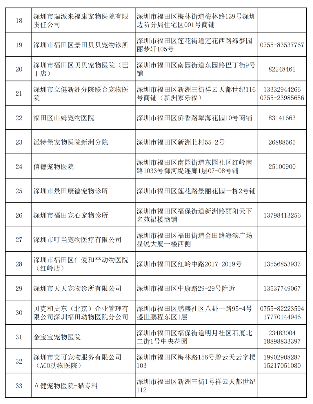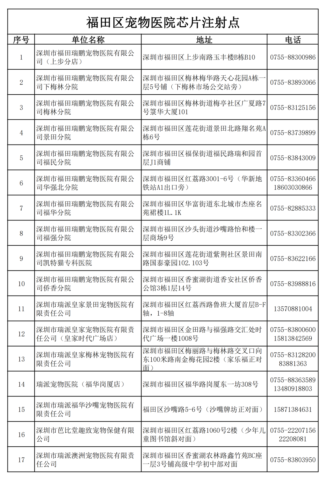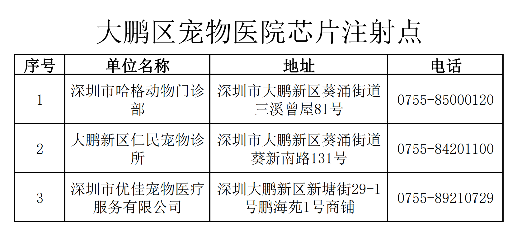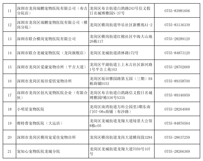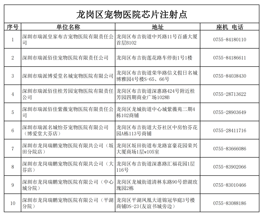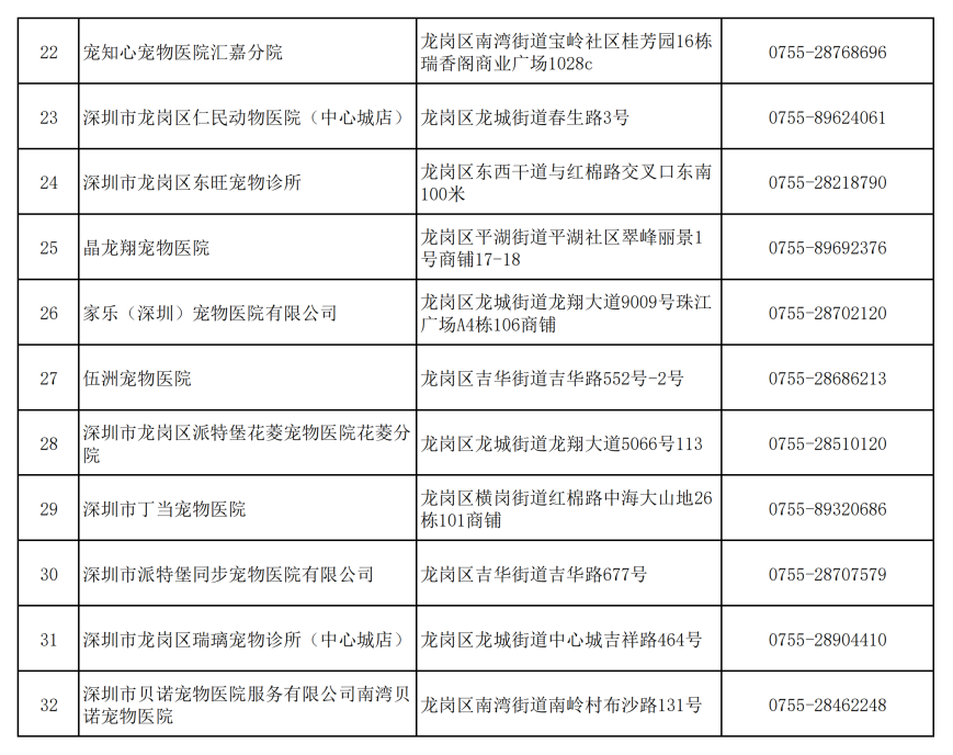 已與各區(qū)簽訂了《犬只芯片植入委托服務(wù)》的寵物醫(yī)院信息。