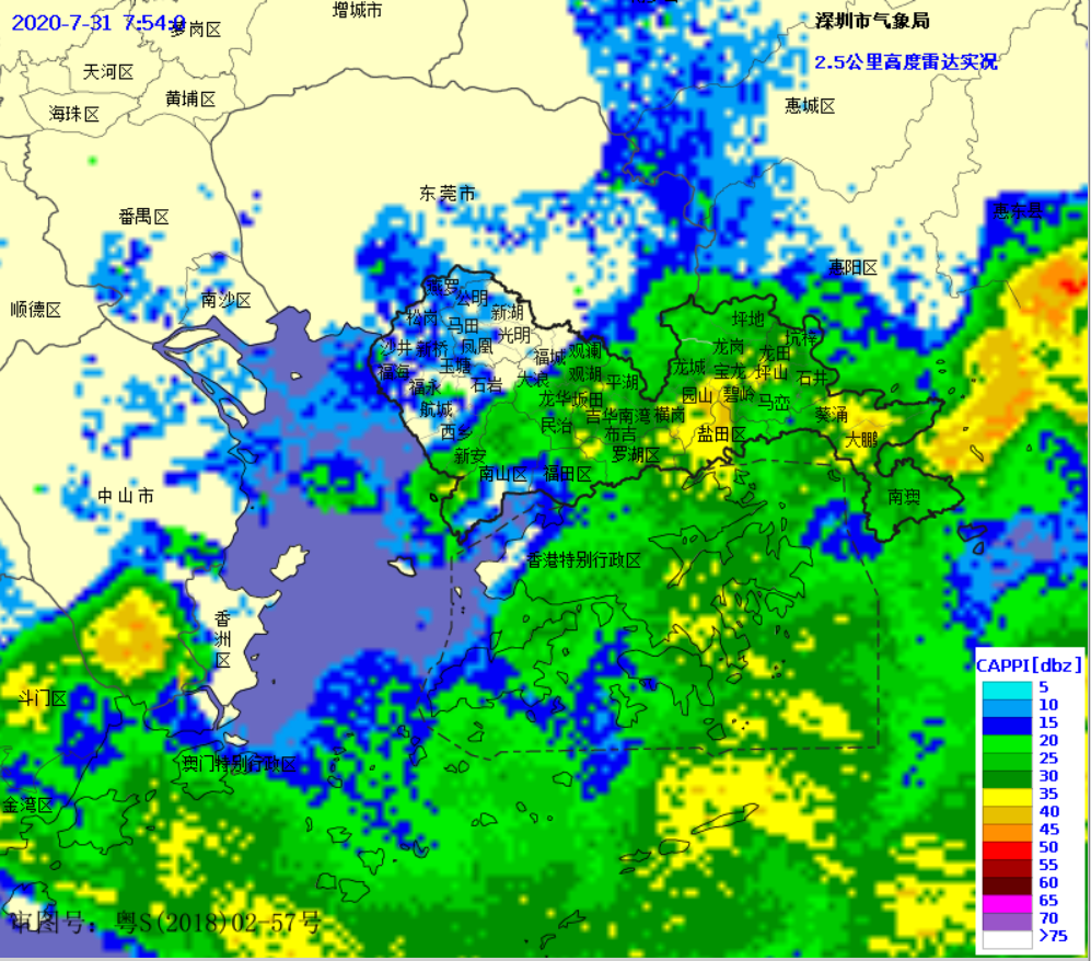 ▲31日7:54雷達(dá)回波圖