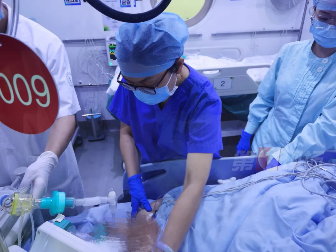 當時人是神智不清的,有頻繁的抽搐,考慮這個頻繁抽搐,還是跟她心跳驟停之后,大腦缺血、缺氧狀態(tài)有關(guān)系。我們樓下?lián)尵仁?,很快就給她一個評估全身的狀態(tài),再一個就是第一時間,我們就給她緊急安排了高壓氧的治療。