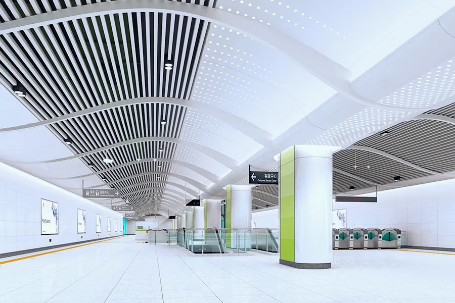 通新嶺站位于福田區(qū)上步路與紅荔路交叉口南側上步路上,呈南北向布置。車站為地下三層單柱雙跨結構,共設出入口3個:A、E、F。此外,與3號線通道換乘。