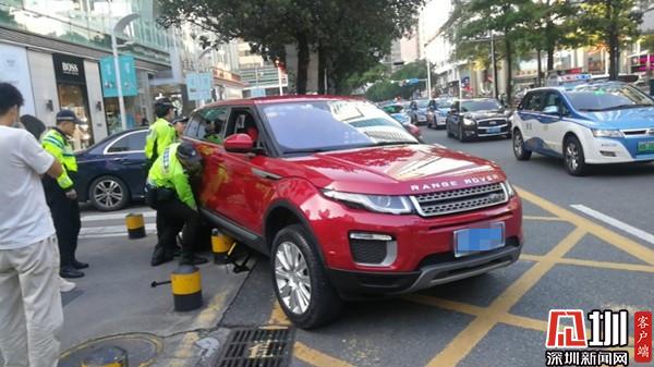 深圳新聞網(wǎng)訊(見圳客戶端、深圳新聞網(wǎng)記者 郭含笑 通訊員 羅佰嬌)10月3日16時(shí)40分左右,正在羅湖區(qū)金光華路段開展整治行動(dòng)的交警遇到一名女士求助,稱車子卡在停車場(chǎng)出口的石墩上。經(jīng)了解,當(dāng)事司機(jī)駕車從金光華地下停車場(chǎng)駛出準(zhǔn)備進(jìn)入主路時(shí),因避讓電動(dòng)車一時(shí)著急向右打滿方向,導(dǎo)致車輛撞到停車場(chǎng)出口的石墩,現(xiàn)車子卡在石墩中間。