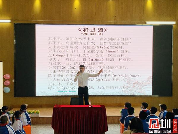 深圳新聞網(wǎng)訊(深圳新聞網(wǎng)記者 彭桂紅 通訊員 梁文雅)為進一步弘揚中華優(yōu)秀傳統(tǒng)文化,近日,深圳市錦田小學特邀青年文化學者、深圳市百姓學習之星、深圳市公益閱讀推廣人、深圳市首屆家園文化文學會會長晉玉東為廣大師生開展了一場別開生面的“中國古典詩詞朗誦藝術鑒賞——兼談如何朗誦好一首詩”公益文化講座。羅湖區(qū)錦田小學德弘校區(qū)副校長劉向陽、羅湖區(qū)錦田小學德弘校區(qū)主任張俊暉、羅湖區(qū)未來學校主任謝淑紅、德弘二年級家委代表以及語文科組老師,一同參加?;顒佑砂嘀魅瘟何难藕蛯W生劉沛東、張家琪共同主持,近200名學生參加了講座活動。整場講座師生熱情高漲,主講嘉賓深入淺出、娓娓道來,參與學生思維活躍、表現(xiàn)積極,帶動校園形成了學習詩詞文化的良好氛圍。
