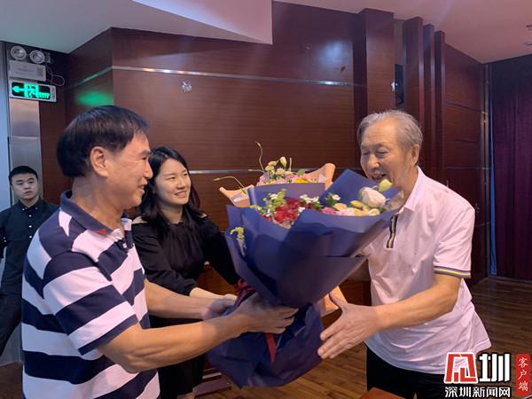 演講結束后,有不少居民現場分享自己的奮斗故事與對深圳的熱愛。在舞臺的另一邊有兩位聽眾上臺給蔣開儒老師送花?!啊洞禾斓墓适隆返墓适乱恢奔钪覀?,我是1984年來的深圳,看著深圳的起步和發(fā)展。今天親臨現場聽到蔣老師(蔣開儒)分享的人生經歷,感覺特別有共鳴。相信春天的故事會延續(xù)下去,深圳將再創(chuàng)輝煌?!惫鹉緢@老年人協會會長徐紅光情緒激動地說道。