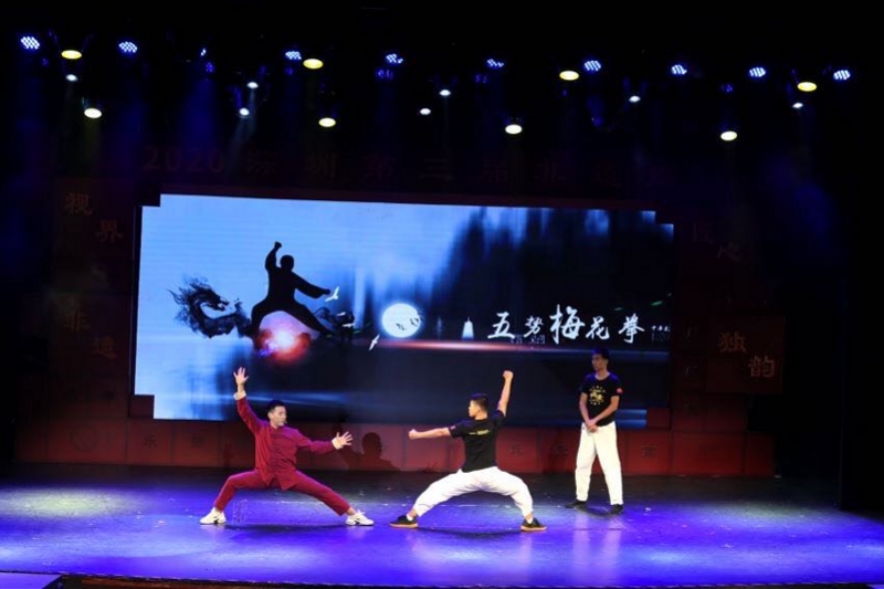 開幕式伊始,羅湖區(qū)第六批非物質(zhì)文化遺產(chǎn)代表性項目現(xiàn)場授牌。自此,《五勢梅花拳》《鄭氏金銀細(xì)工制作技藝》《王氏面塑》《楊氏中國結(jié)》《聶氏麥稈畫》《盆景藝術(shù)》《萃華金銀制品(花絲鑲嵌與鏨刻)工藝》等7項傳統(tǒng)藝術(shù),成為羅湖區(qū)新一批非遺項目。
