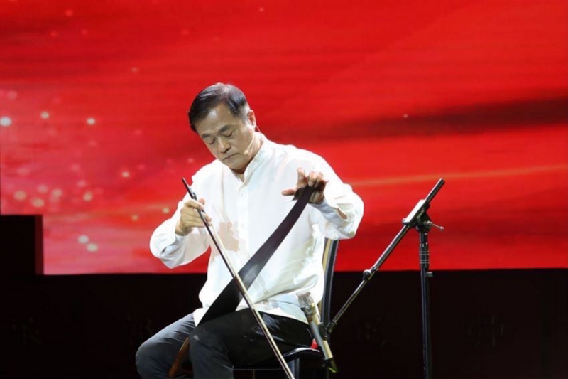 隨后,《鋸琴藝術(shù)》傳承人李元慶在不斷變換鋸片彎曲角度、拉動馬尾弓期間,奏出一首長達(dá)近4分鐘的悠揚樂曲。他說,自己拉了30年鋸琴,希望讓更多人了解這門非遺藝術(shù)。在他的鼓勵下,觀眾席里兩名小學(xué)生舉手上臺,用鋸琴敲出長短不一的音符。