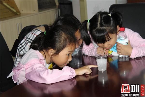30位社區(qū)青少年年紀(jì)最小的6歲,最大的12歲,有的是跟家長一起,有的是兄弟姐妹一起來,他們認(rèn)真聽課,積極參與實驗,眼看著普普通通的自來水,加入一種化工原料,就從液體變成了顆粒狀,霏霏小朋友張大了嘴巴驚呼:“好神奇啊!”在老師的講解下,他們知道了其中的原理,同時也學(xué)會了尋找身邊生活中的科學(xué)現(xiàn)象,用化學(xué)的視角理解身邊的問題。