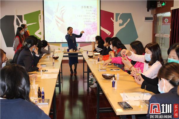 據(jù)了解,劉燦輝浸染芳香研究十幾年,有著豐富的芳療經(jīng)驗(yàn)。在課堂上,劉燦輝耐心地引導(dǎo)社區(qū)婦女在芳香中忘掉壓力和煩惱,體驗(yàn)愉快,開(kāi)拓出精神力量。20位社區(qū)婦女還在老師的帶領(lǐng)下,動(dòng)手制作潤(rùn)手霜。大家相互幫助,彼此配合,經(jīng)過(guò)調(diào)試、攪拌、加熱、瓶裝等過(guò)程,每位學(xué)員都擁有了一支專(zhuān)屬于自己的潤(rùn)手霜。