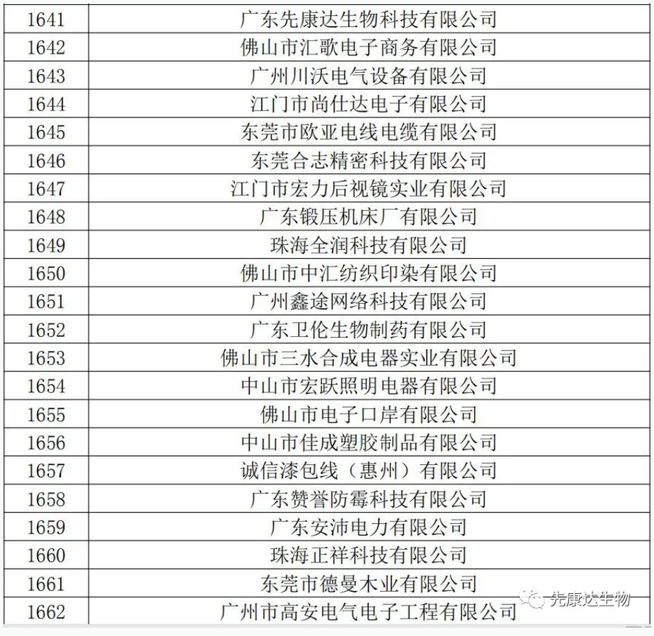 近日,廣東省科技廳公布廣東省2020年度第一批國家高新技術企業(yè)名單,廣東先康達生物科技有限公司赫然名列其中,這標志著先康達生物邁上一個更大的臺階。