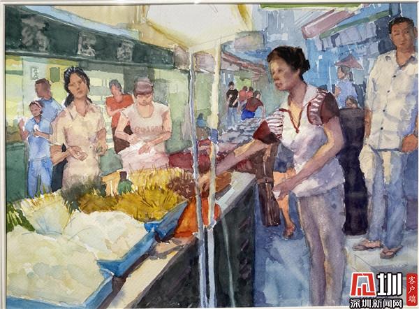 據(jù)了解,《東門這地方》展覽以東門景觀為題材,創(chuàng)作者中不乏地地道道的東門原住民,通過藝術(shù)畫作的形式詮釋和表達(dá)東門的歷史文化。出生在東門,求學(xué)也在東門的張躍侖在接受記者采訪時(shí)表示,因?yàn)樽约壕褪峭辽灵L(zhǎng)的東門人,所以對(duì)東門的感情深厚,希望通過類似活動(dòng),來(lái)實(shí)現(xiàn)“本土文化的本土表達(dá)”,也希望能引起許多老深圳人對(duì)東門的回憶,讓更多人認(rèn)識(shí)東門的格局。其中他提到,此次畫展的亮點(diǎn)增加了不少畫家在去年疫情的時(shí)所作的作品,以自己的所見所聞,表達(dá)對(duì)東門生活的新認(rèn)知。