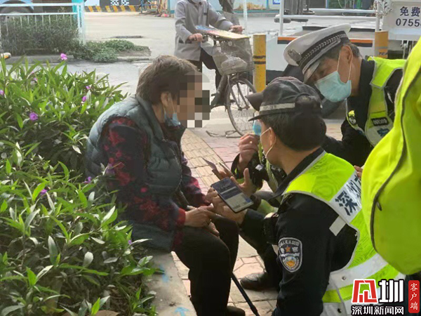 天色漸晚,此時深圳的交通處于晚高峰車多緩行狀態(tài),民警考慮到賀老太太獨自坐在路邊存在安全隱患。于是民警把賀老太太攙扶上警車,帶著賀老太太一路從濱河大道至漁民村-和平路-嘉賓路-金光華-火車站一帶的城中村查找線索。同時,民警還向110指揮中心和附近多個派出所反映該情況,看是否有人報警尋找走失的老太太。