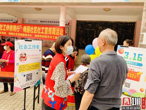 見圳客戶端· 深圳新聞網(wǎng)3月16日訊(記者 郭含笑 實習(xí)生 覃鈺清 通訊員 李珍鳳 張亮亮)為進(jìn)一步提高社會工作的影響力,樹立社會工作專業(yè)形象,3月16日下午,深圳市清水河街道梅園社區(qū)黨委、深圳市東西方社工服務(wù)社駐梅園社區(qū)黨群服務(wù)中心的社工開展了“幸福梅園 社工伴你同行”社工宣傳周活動。