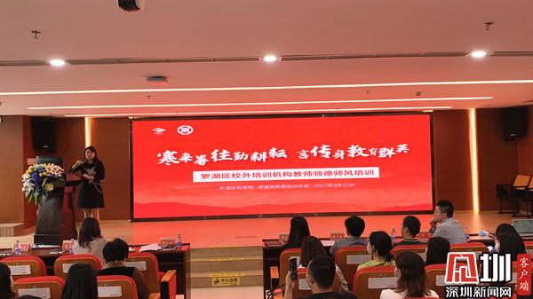 見(jiàn)圳客戶端·深圳新聞網(wǎng)3月17日訊(記者 郭含笑)為進(jìn)一步推進(jìn)校外培訓(xùn)機(jī)構(gòu)專項(xiàng)治理,加強(qiáng)學(xué)校師德師風(fēng)建設(shè),3月17日下午,深圳市羅湖區(qū)教育局開展校外培訓(xùn)機(jī)構(gòu)教師師德師風(fēng)培訓(xùn)會(huì)議與消防安全培訓(xùn)。羅湖區(qū)教育局工作人員、78所培訓(xùn)機(jī)構(gòu)法人、負(fù)責(zé)人及教師代表參加了此次會(huì)議。