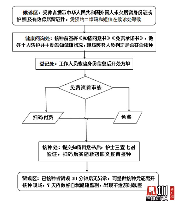 按照“知情同意、自愿自費(fèi)、便利接種、風(fēng)險(xiǎn)自擔(dān)”原則,持有內(nèi)地公安部門(mén)制發(fā)的港澳居民居住證或內(nèi)地醫(yī)保參保憑證的港澳人士、在省內(nèi)各類學(xué)校工作和學(xué)習(xí)的港澳籍師生以及參加廣東省社會(huì)保障醫(yī)療保險(xiǎn)的外籍人士,均可免費(fèi)接種新冠疫苗;不符合以上免費(fèi)接種條件的港澳同胞、外籍人士自愿參與疫苗接種,將按照100元/劑次收取費(fèi)用。目前,深圳使用的是國(guó)產(chǎn)新冠病毒滅活疫苗,全程共需接種兩劑。