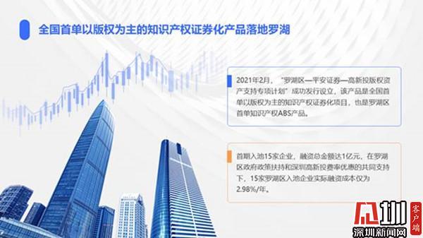 見(jiàn)圳客戶端·深圳新聞網(wǎng)4月23日訊(記者 郭含笑 通訊員 王瑛 鮑朗舒)今年2月,“羅湖區(qū)—平安證券—高新投版權(quán)資產(chǎn)支持專項(xiàng)計(jì)劃”在深圳證券交易所正式成立,發(fā)行規(guī)模1億元。4月23日上午,深圳羅湖“雙周發(fā)布”舉行版權(quán)證券化專場(chǎng),發(fā)布了羅湖區(qū)知識(shí)產(chǎn)權(quán)證券化扶持的最新政策。