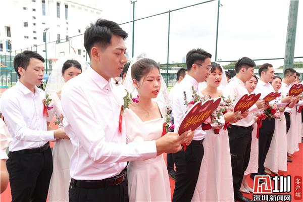 新郎身穿白襯衣,新娘身著潔白婚紗,他們十指緊扣,笑容甜蜜,在眾人的見(jiàn)證下交宣讀誓言、深情擁吻,許下一生愛(ài)的承諾。羅湖區(qū)副區(qū)長(zhǎng)馮健和羅湖區(qū)民政局局長(zhǎng)楊文秀作為特邀頒證師,分別為20對(duì)新人頒發(fā)結(jié)婚證書(shū)并送上誠(chéng)摯的祝福,新人們的歡聲笑語(yǔ)充滿(mǎn)了婚姻登記處的每個(gè)角落,處處洋溢著幸福與喜悅。通過(guò)集體頒證莊嚴(yán)而神圣的儀式感,向新人們強(qiáng)調(diào)法律的嚴(yán)肅性和婚姻的莊嚴(yán)性,讓他們銘記婚姻家庭蘊(yùn)含的責(zé)任與擔(dān)當(dāng),同時(shí)倡導(dǎo)廣大市民樹(shù)立“重登記、強(qiáng)責(zé)任、崇節(jié)儉”的婚俗新風(fēng)意識(shí),形成婚事新辦、簡(jiǎn)辦的文明新風(fēng)尚。