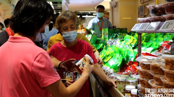 記者現(xiàn)場看到,在華潤萬家蓮塘店二樓,一位店員拿起一瓶來自廣西隆林的農產(chǎn)品,向顧客熱情地介紹著?!皨專矣X得這個不錯,顏色也不是那種很白的,看起來很放心?!鳖櫩湍闷鹨黄堪俸细?,和同行的母親討論了一下,就放進了購物籃內,身后不少顧客也拿起商品仔細打量,專柜上“羅湖區(qū)消費幫扶專區(qū)”的字樣引人注目。