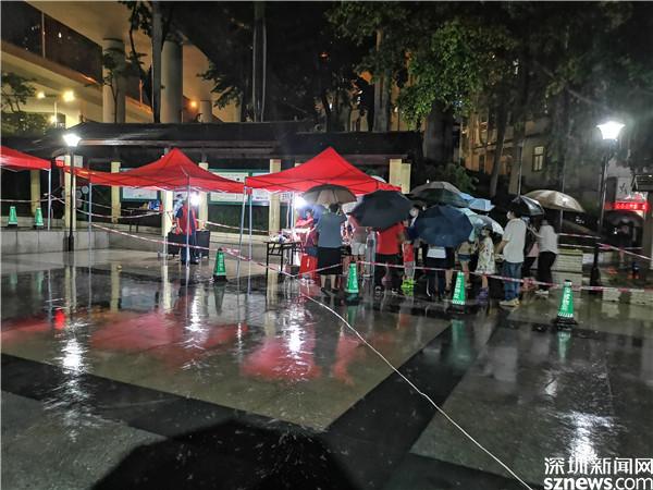 讀特客戶端·深圳新聞網2021年6月21日訊(記者 李慧)6月21日晚及6月22日一早,深圳雷雨交加,深圳市氣象臺2021年06月22日07時10分在多個區(qū)域發(fā)布暴雨紅色預警,羅湖也包括其中。有那么一群人,嚴陣以待、逆雨迎風,堅守在抗疫一線。記者到各核酸檢測點看到,醫(yī)護人員和社區(qū)義工們仍然冒著風雨,堅守在核酸采集的崗位上。