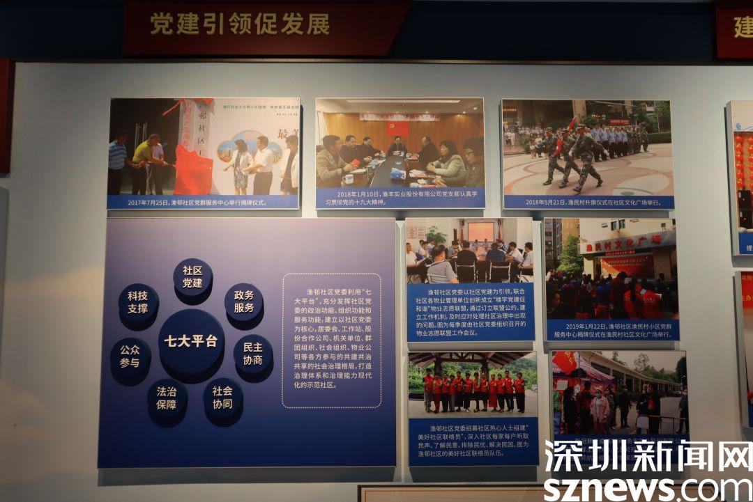 來到第四部分——先行示范,新時(shí)代新羅湖新漁村;新時(shí)代,漁民村有了新目標(biāo),踏上新征程,在社區(qū)建設(shè)上,不僅有了豐富的社區(qū)設(shè)備設(shè)施,還在精神文明上得到了極大發(fā)展,展示了目前漁民村中明亮的魚邨圖書館、便民的漁村社區(qū)黨群服務(wù)中心、5G速度賦能的智慧社區(qū)等成就,在以黨建引領(lǐng)的社區(qū)工作下,漁民村正成為著現(xiàn)代化城市黨建引領(lǐng)基層治理的典范。