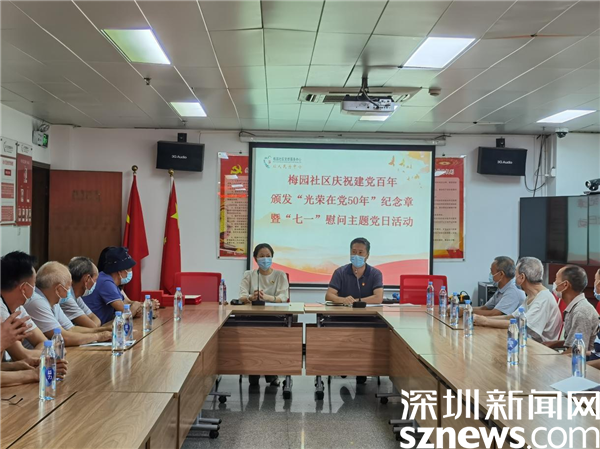 讀特客戶端·深圳新聞網(wǎng)2021年6月30日訊(記者 郭含笑 通訊員 陳秋珊 紀(jì)楚苗)為進(jìn)一步加強(qiáng)和體現(xiàn)黨組織對(duì)黨員的關(guān)心與愛(ài)護(hù),在中國(guó)共產(chǎn)黨百年華誕來(lái)臨之際,6月30日下午,深圳市羅湖區(qū)清水河街道梅園社區(qū)黨委在黨群服務(wù)中心二樓會(huì)議室舉行慶祝建黨百年頒發(fā)“光榮在黨50年”紀(jì)念章暨“七一”慰問(wèn)主題黨日活動(dòng)。