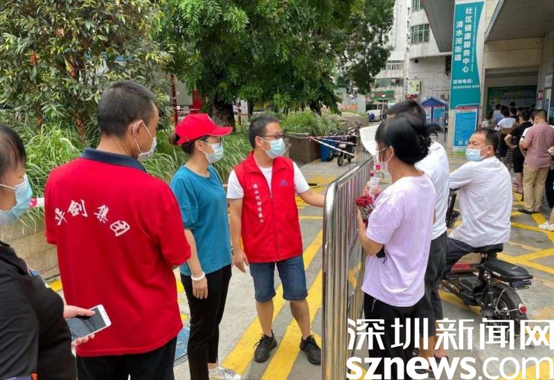 據(jù)了解,在本次疫情防控期間,羅湖區(qū)委下沉干部主要負責坭崗社區(qū)合圍各個卡口,他們每天忙于測溫、查驗行程軌跡、查驗健康碼、出入車輛管理、回應居民咨詢,為坭崗社區(qū)筑造一條堅實的防線。除此之外,來自深圳報業(yè)集團的工作隊也堅守在清水河街道社康。他們通過耐心地指引居民截取行程碼、健康碼,來維護現(xiàn)場秩序,引導居民接種疫苗。從早上7點到晚上10點,甚至是12點,他們都和社區(qū)工作者一樣,堅守在疫情防控的第一道防線,為社區(qū)疫苗接種推進工作提供了極大的幫助。這些下沉干部和工作隊也得到社康工作人員和周邊居民的點贊,清水河街道社康主任感嘆說:“下沉干部和工作隊的帥哥們真是給力??!”