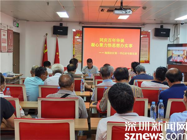 清水河街道四級(jí)調(diào)研員、梅園社區(qū)第一書(shū)記黃大滿(mǎn)為全體黨員講授黨史學(xué)習(xí)教育專(zhuān)題黨課,黨課和表彰會(huì)由梅園社區(qū)黨委副書(shū)記陳秋珊主持,社區(qū)兩委班子成員以及下轄25個(gè)黨支部書(shū)記參加。