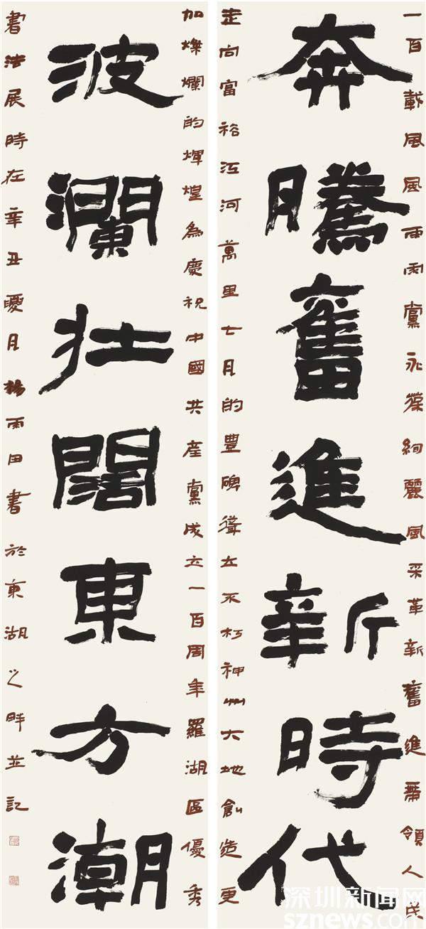 讀特客戶端·深圳新聞網2021年7月20日訊(記者 郭含笑 劉嘉敏 通訊員 柳夢潔)7月20日,由中共深圳市羅湖區(qū)委宣傳部、深圳市羅湖區(qū)文學藝術界聯(lián)合會、深圳市書法家協(xié)會主辦,羅湖美術館、羅湖區(qū)書法家協(xié)會承辦的“黨在我心中——慶祝中國共產黨成立100周年羅湖區(qū)優(yōu)秀書法作品展”在羅湖美術館開幕,展覽將展至7月25日。